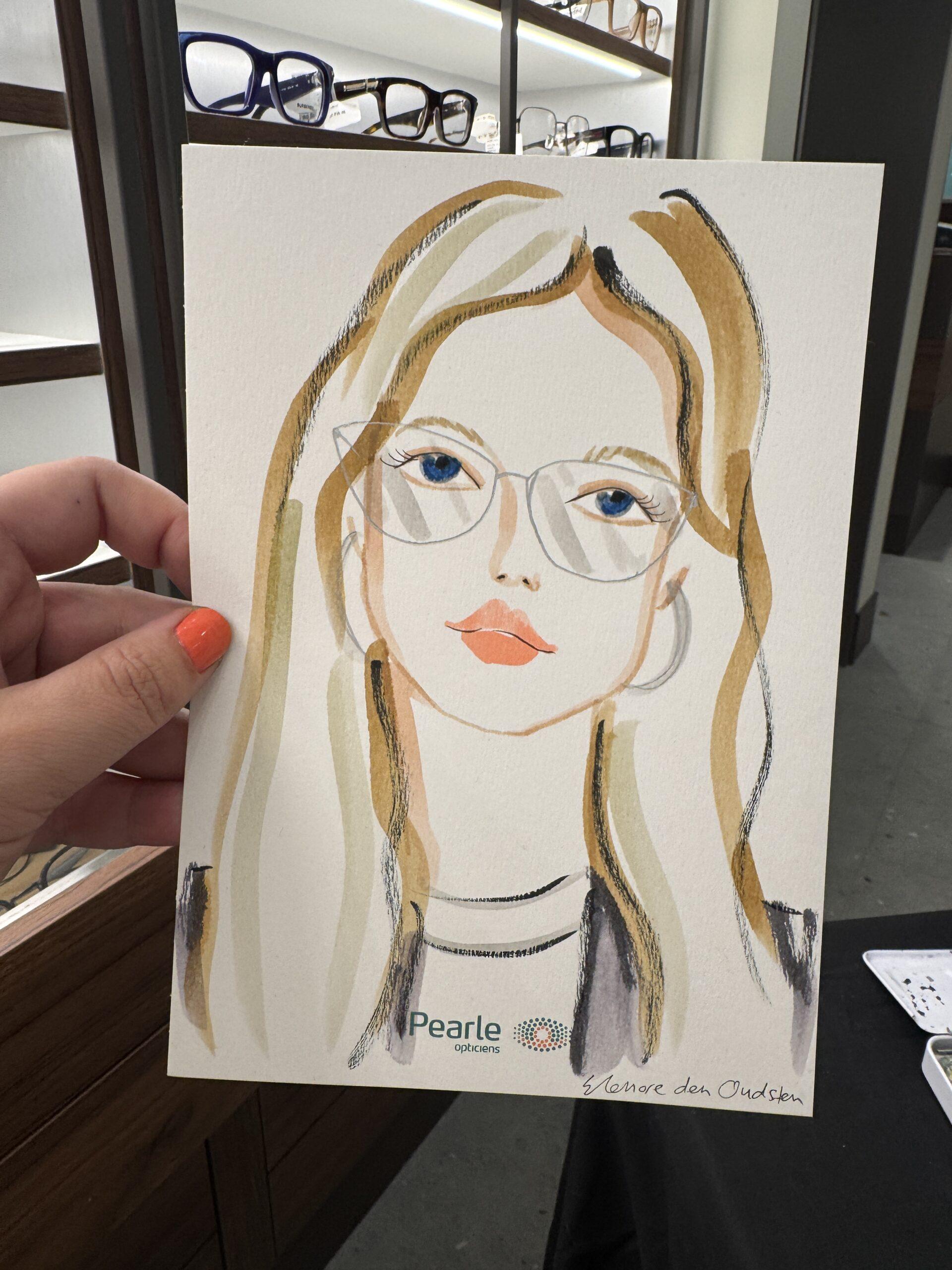 Gasten vinden het vaak heel leuk om te kijken haar hoe de illustraties tot stand komen, daarnaast heb ik ook altijd een leuk gesprekje tijdens het maken.